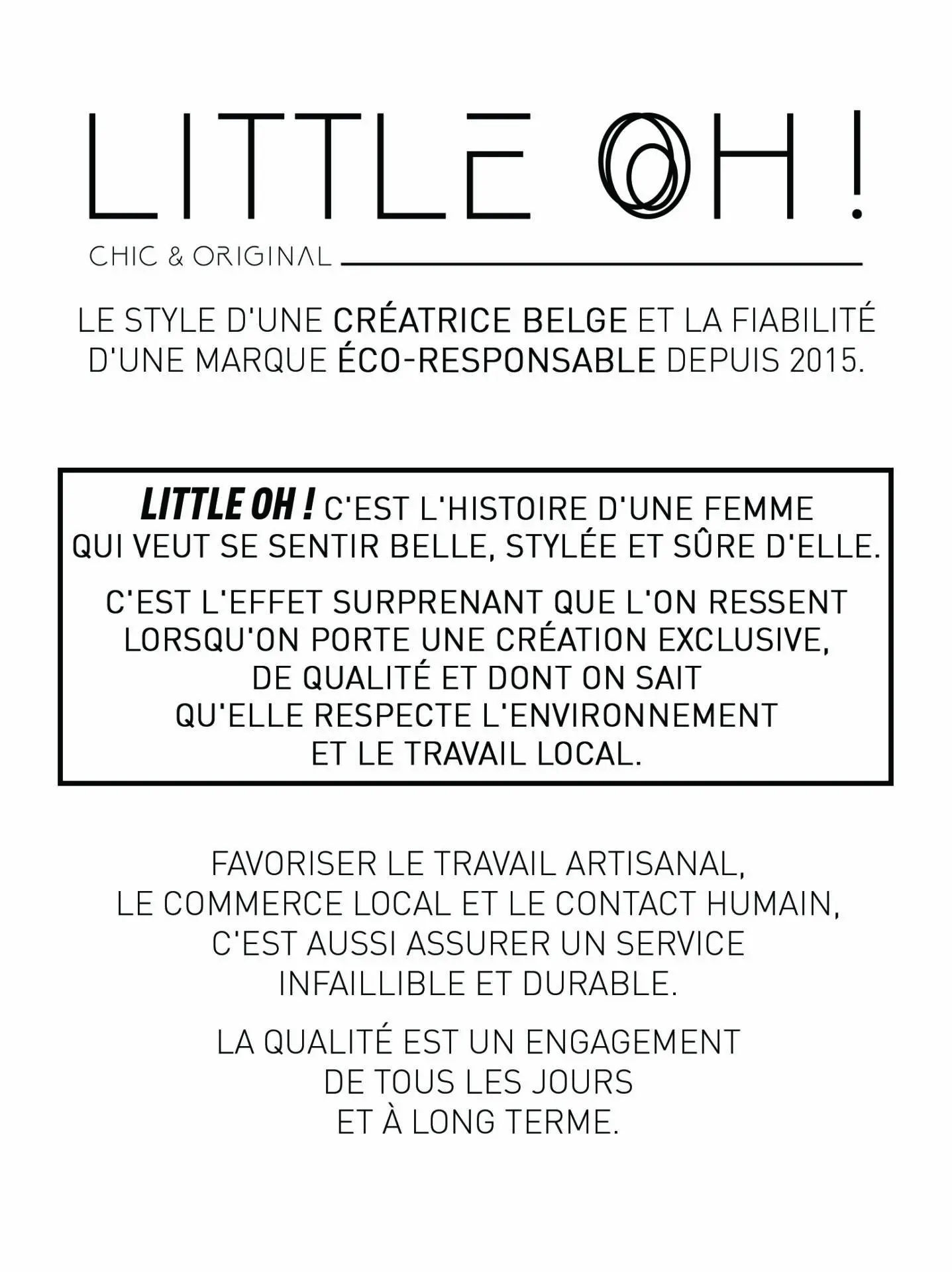 Notre état d’esprit, depuis toujours, est de privilégier la satisfaction de nos clientes plutôt que l’aspect économique : Little Oh! est pour nous une activité complémentaire dont l’objectif est d’apporter du BONHEUR : dans notre vie et dans la vôtre.