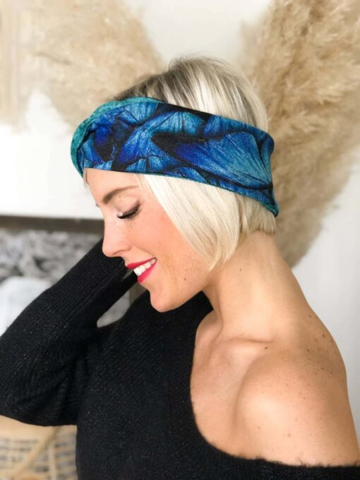 Les motifs sont identiques aux motifs que nous avons créés pour les écharpes de la même collection. Chaque bandeau étant réversible, il vous permet de mettre en évidence la couleur la mieux assortie à votre tenue … Vous constaterez également que selon le côté de votre choix, le noeud de croisement aura un style différent.