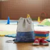 Cartable maternelle (H : 21cm, L : 24cm , l : 7cm) avec poche plaquée à l’avant.