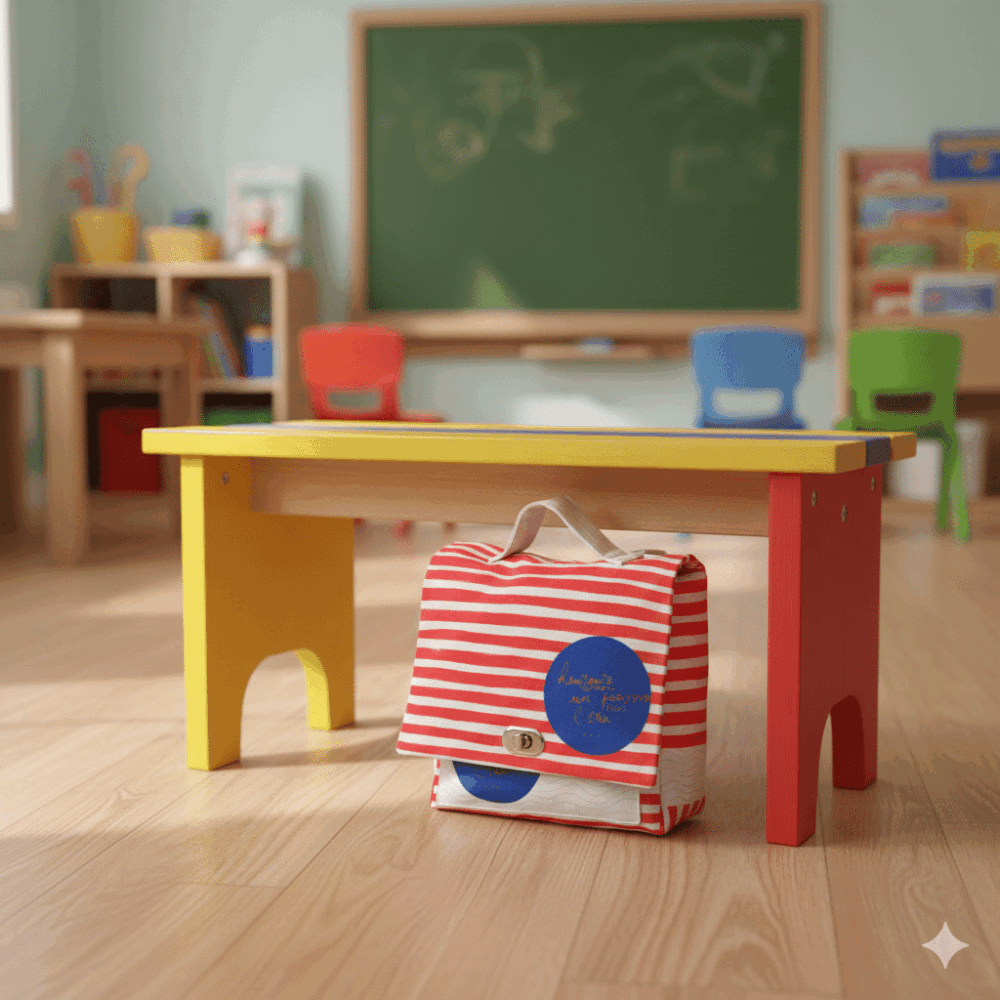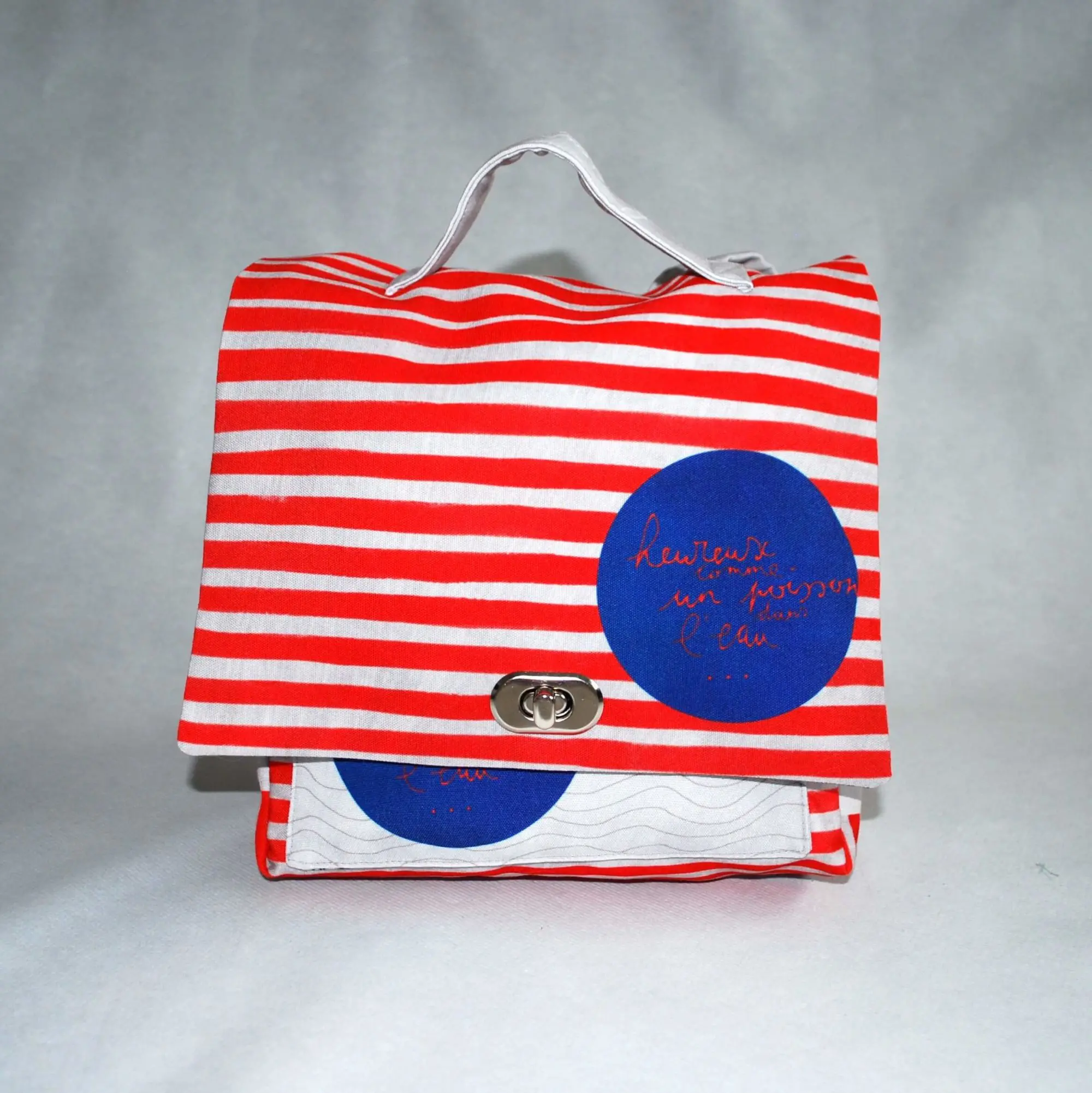 Cartable maternelle (H : 21cm, L : 24cm , l : 7cm) avec poche plaquée à l’avant.