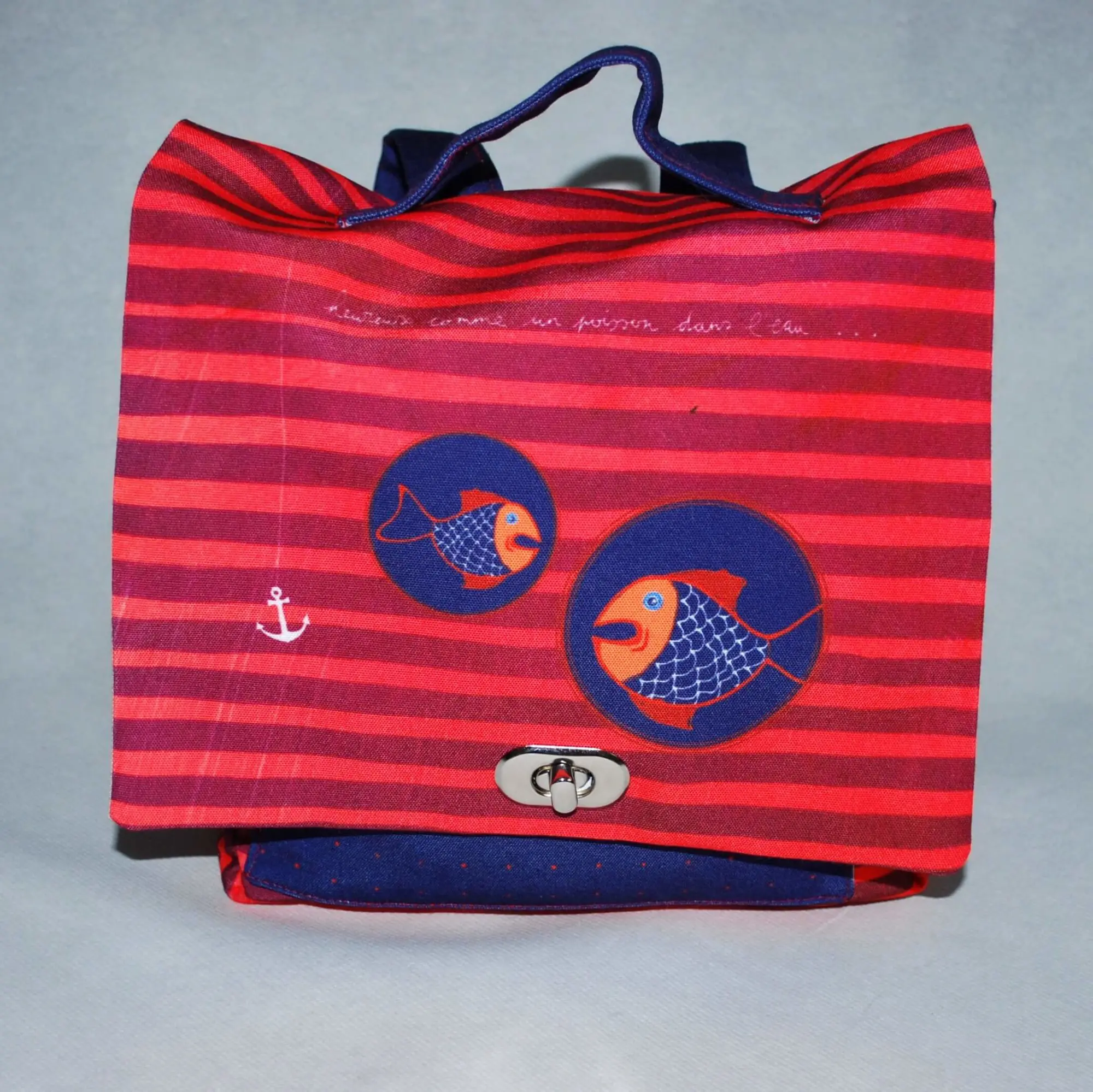 Cartable maternelle (H : 21cm, L : 24cm , l : 7cm) avec poche plaquée à l’avant.