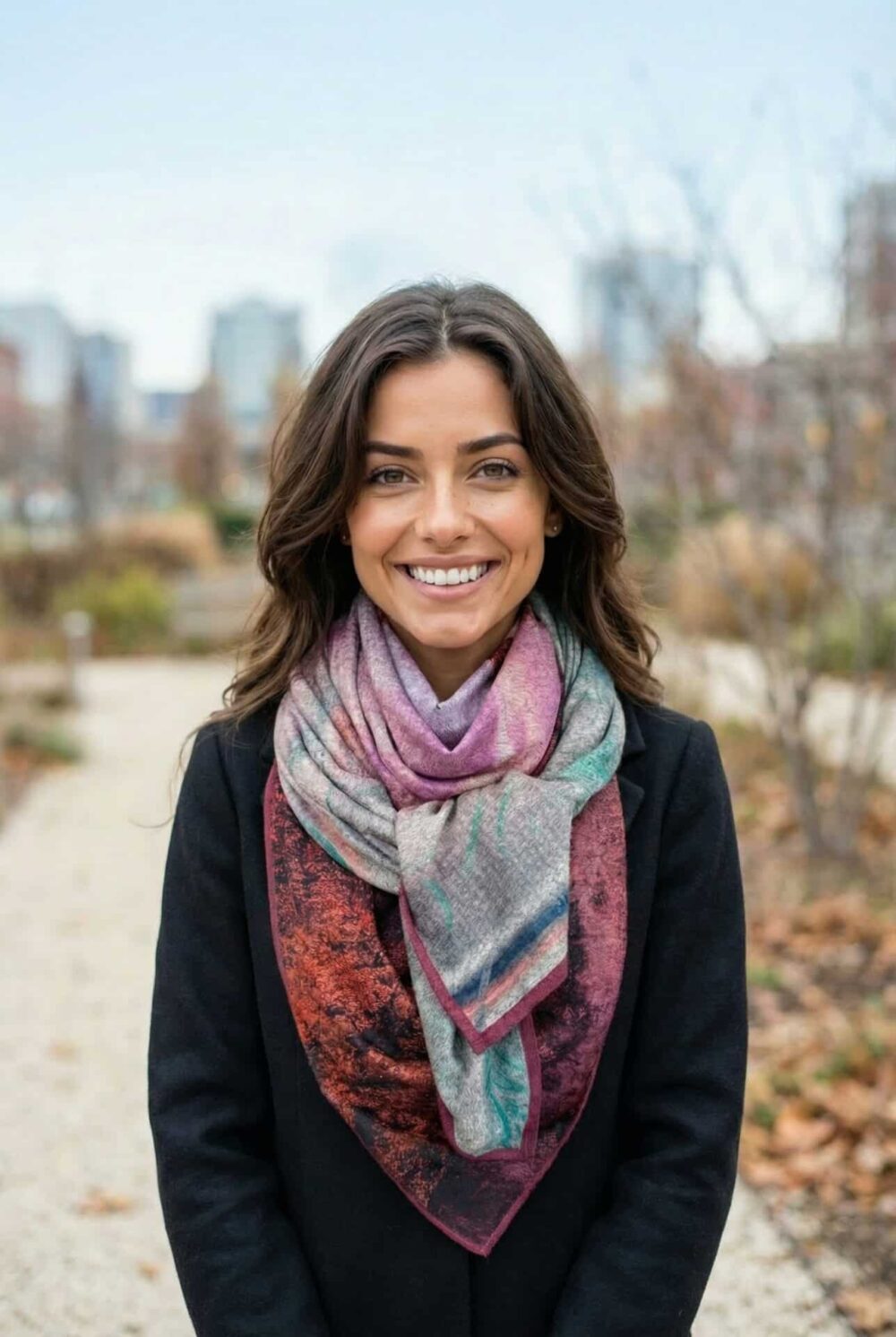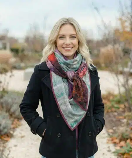 Echarpe en carré Little Oh! dans un tissu particulièrement chaud et doux.