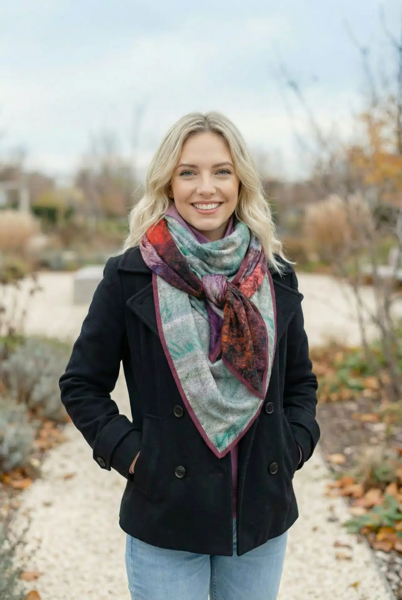 Dimensions : 140 x 140cm (idéal pour des noeuds stylés, sans la sensation de porter une écharpe trop imposante)