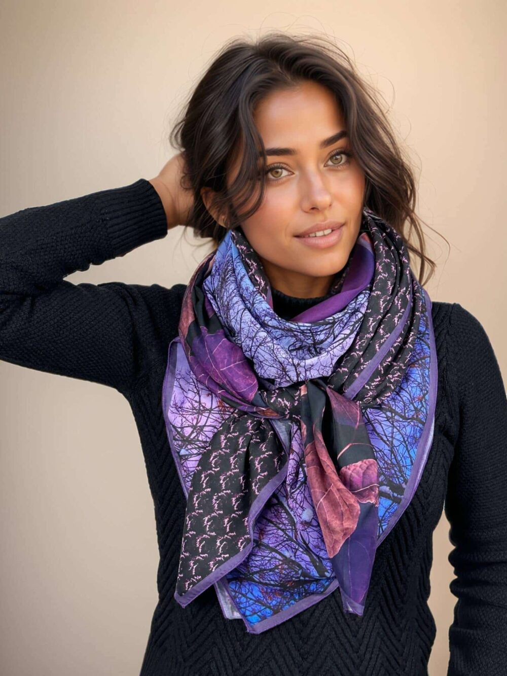 Dimensions : 140 x 140cm (idéal pour des noeuds stylés, sans la sensation de porter un foulard trop imposant)