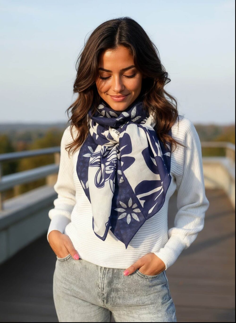 Foulard 140×140 – Navy Bloom