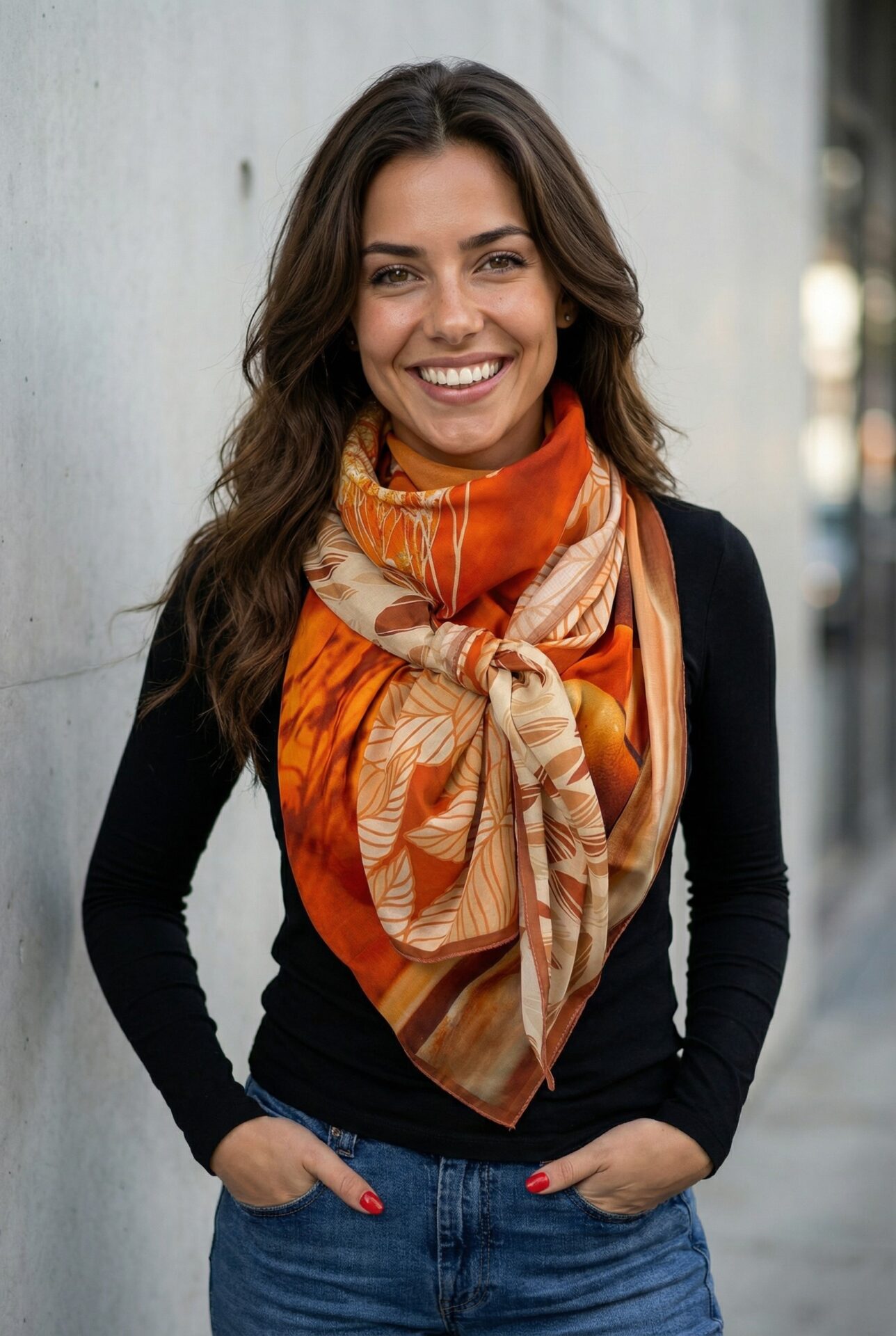 ➡ Notez que nos foulards peuvent être portés autour du cou de différentes façons, mais aussi en paréo, en tunique, dans les cheveux et même en sac-bandoulière. Retrouvez nos tutos ou inscrivez-vous à notre Newsletter pour nous les réclamer.