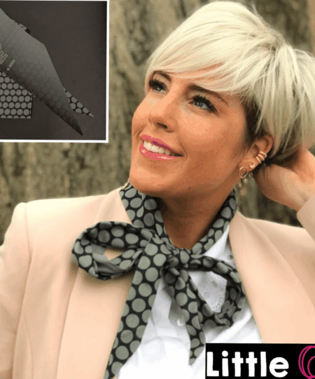 Dans la même matière agréable et qui ne glisse pas, et avec les motifs (exclusifs) assortis à nos foulards.