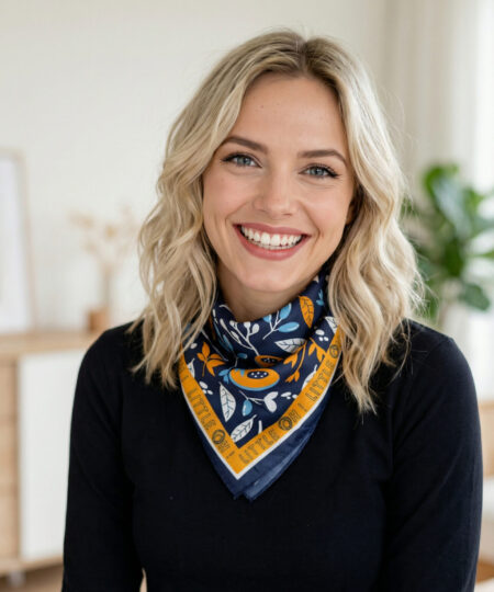 ➡ Notez que nos foulards peuvent être portés autour du cou de différentes façons, ainsi que dans les cheveux ou en bandoulière. Retrouvez nos tutos ou inscrivez-vous à notre Newsletter pour nous les réclamer.